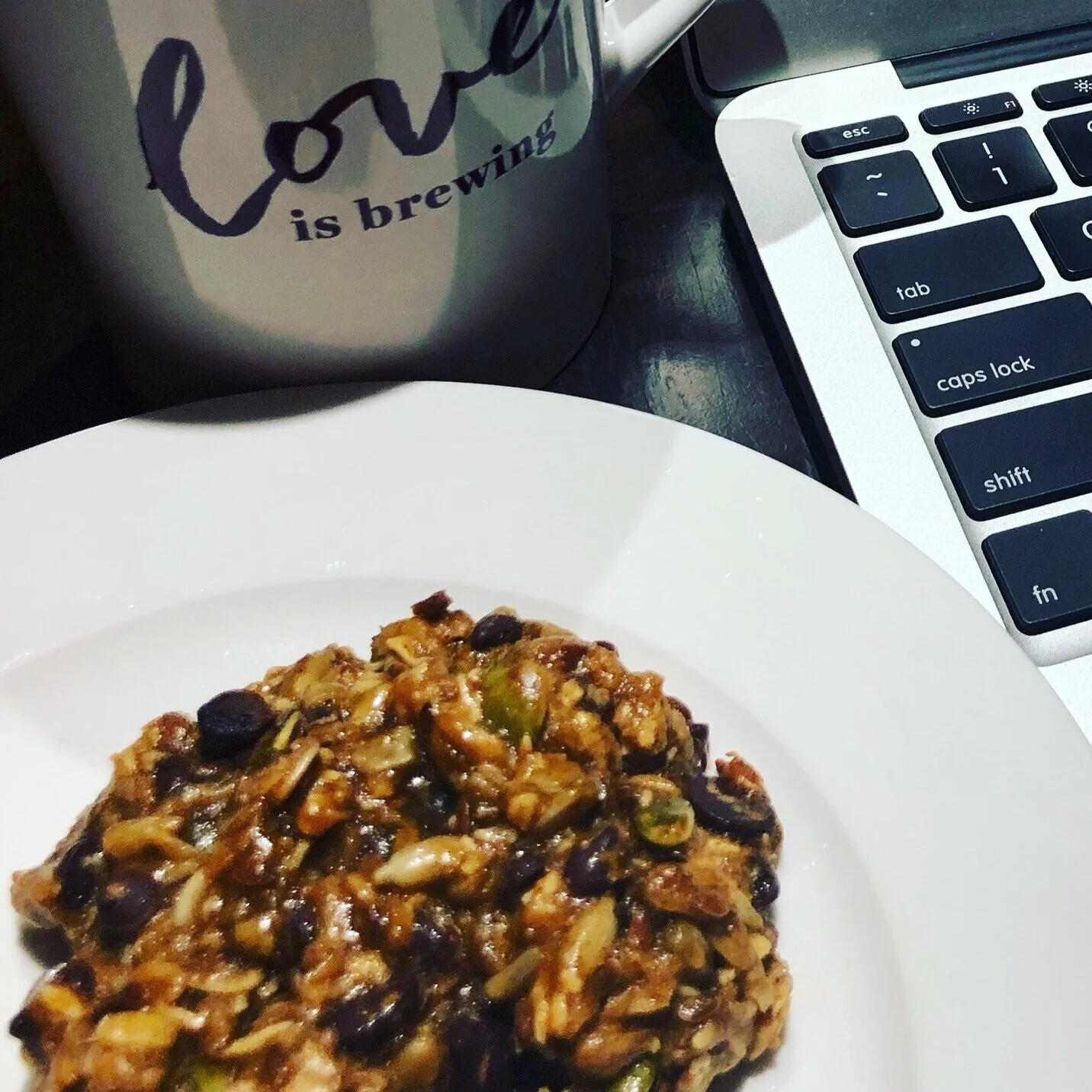 The power cookie at Whole Foods was always a indulgent snack for me when I was at school in Vancouver so when I found a recipe to recreate it I was hooked! The Whole Foods cookie was HUGE but I would eat the whole thing since it was so delicious. Oats, seeds, molasses, chocolate…what is not to love! These are a little on the heavier calorie side, even though they aren’t your average sugar filled cookie, so in order to cut down on calories I make these a little smaller. It’s enough to satisfy my hungry and my afternoon sweet tooth.